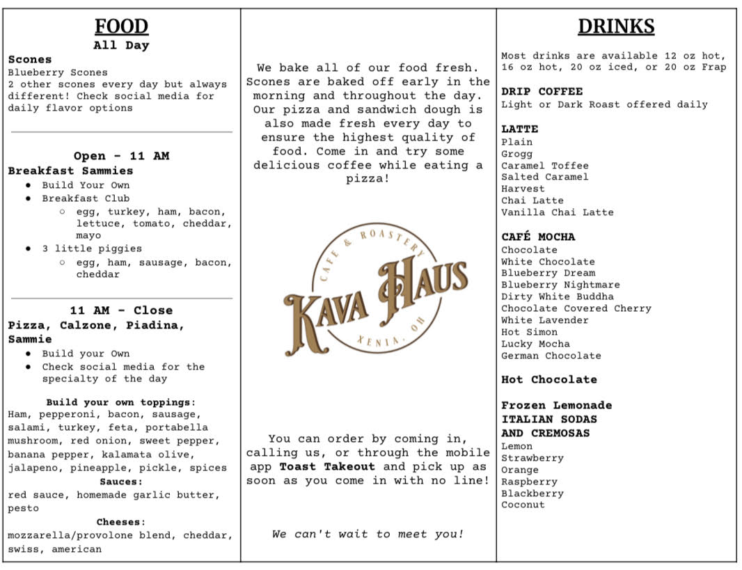 Welcome to Kava Haus Xenia, a charming café nestled at 29 E Main St, Xenia, OH. Here, the ambiance blends cozy rustic vibes with tastefully mismatched décor, creating a perfect backdrop for a delightful culinary experience.